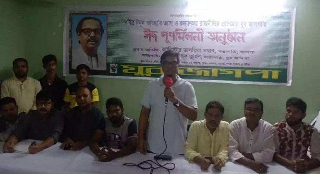 তিনি বলেন, ‘লাখো শহীদদের রক্তে অর্জিত বাংলাদেশে জনগনের ভাগ্য এখন বড়ই নির্মম। শাসকরা আমাদের ভাতে মারে, পানিতে মারে এখন ডেংগুতে মারতে শুরু করেছে।’ তিনি আরো বলেন, ‘পশুর চামড়া খেকো ও এতিমের হক লুটেরা দেশ ধ্বংসের এক ভয়ংকর বাহীনি। সুতরাং দেশ বাঁচাও মানুষ বাঁচাও সংগ্রামের বিকল্প নাই।’ তিনি আজ শনিবার বিকাল ৪ টায় আসাদগেট জিইউপি মিলনায়তনে যুব জাগপা আয়োজিত ঈদ পূণর্মিলনী অনুষ্ঠানে প্রধান অতিথির বক্তব্যে এসব কথা বলেন।