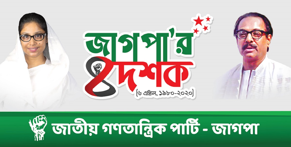 আজ ৬ এপ্রিল জাতীয় গণতান্ত্রিক পার্টি – জাগপা’র ৪০ বছর পূর্তি। ১৯৮০ সালের এই দিনে ঢাকার রমনা গ্রীনে আয়োজিত সংবাদ সম্মেলনে প্রতিষ্ঠাতা আহ্বায়ক হিসেবে শফিউল আলম প্রধান জাগপার আহ্বায়ক কমিটি ও মৌল নীতিমালা ঘোষণা করেছিলেন। “জাতীয় স্বাধীনতা আমাদের অঙ্গীকার”, “ধর্মীয় স্বাধীনতা আমাদের বিশ্বাস”, “জনগণের গণতন্ত্র আমাদের রাজনীতি” এবং “স্বয়ং সম্পূর্ণ গণ প্রতিরক্ষা ও ইনসাফ ভিত্তিক স্বনির্ভর স্বদেশ আমাদের অর্থনীতি” এই ৪ টি ঘোষণা নিয়ে যাত্রা শুরু করেছিল জাগপা। ১৯৮০ সালের ৬ এপ্রিল থেকে ২০১৭ সালের ২১ মে পর্যন্ত জাগপা সভাপতির দায়িত্ব পালন করেন শফিউল আলম প্রধান। ২১ মে ২০১৭ শফিউল আলম প্রধানের মৃত্যুর পর দলের সভাপতির দায়িত্ব নেন অধ্যাপিকা রেহানা প্রধান। ২২ অক্টোবর ২০১৯ অধ্যাপিকা রেহানা প্রধান ইন্তেকাল করলে দলের সভাপতির দায়িত্ব গ্রহণ করেন বর্তমান সভাপতি ব্যারিস্টার তাসমিয়া প্রধান। দলের বর্তমান সাধারণ সম্পাদক অধ্যাপক ইকবাল হোসেন। জাগপা নির্বাচন কমিশনের ৩৬ নম্বর নিবন্ধিত দল এবং দলীয় প্রতীক হুক্কা নিয়ে সর্বশেষ ২০১৮ সালের জাতীয় নির্বাচনে ৪ টি আসনে অংশগ্রহণ করেছিল।